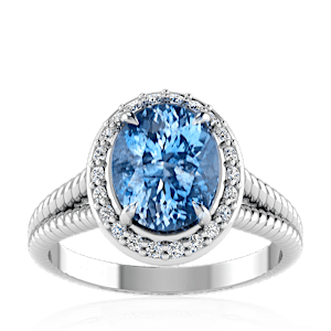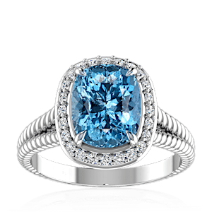 4.19ct Aquamarine set in Split Serpent Halo Natural Diamond Ring