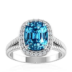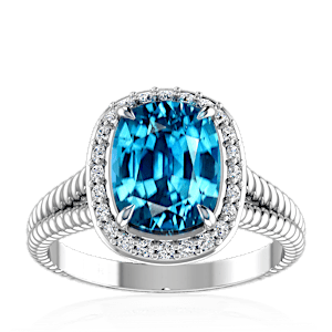 6.28ct Zircon set in Split Serpent Halo Natural Diamond Ring