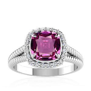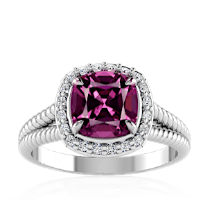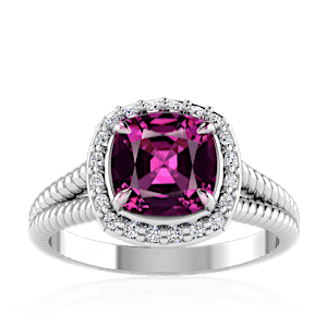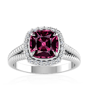1.62ct Rhodolite set in Split Serpent Halo Natural Diamond Ring