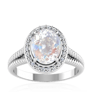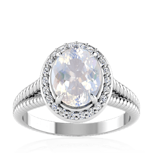 2.60ct Rainbow Moonstone set in Split Serpent Halo Natural Diamond Ring