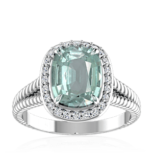 2.12ct Aquamarine set in Split Serpent Halo Natural Diamond Ring
