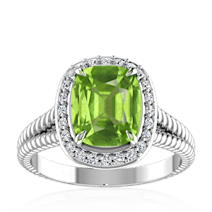 5.53ct Peridot set in Split Serpent Halo Natural Diamond Ring