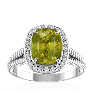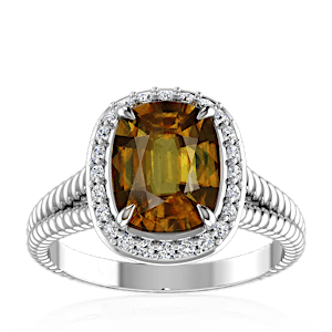 7.89ct Sphene set in Split Serpent Halo Natural Diamond Ring