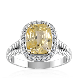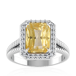 3.06ct Yellow Sapphire set in Split Serpent Halo Natural Diamond Ring