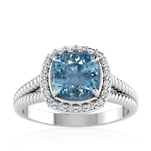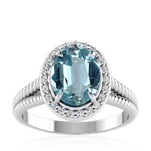 1.53ct Aquamarine set in Split Serpent Halo Natural Diamond Ring