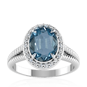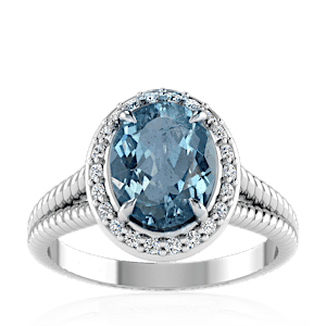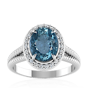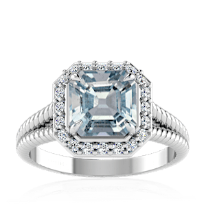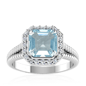 1.08ct Aquamarine set in Split Serpent Halo Natural Diamond Ring