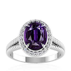 2.49ct Purple Sapphire set in Split Serpent Halo Natural Diamond Ring