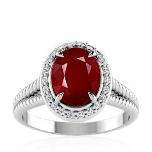 3.00ct Mozambique Ruby set in Split Serpent Halo Natural Diamond Ring