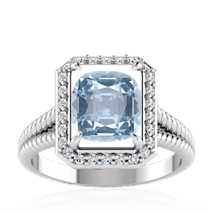 2.95ct Aquamarine set in Split Serpent Halo Natural Diamond Ring