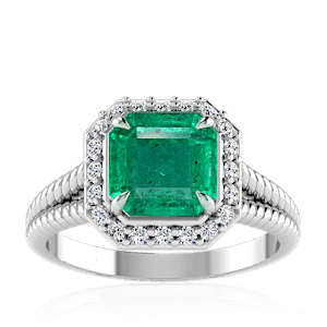 1.92ct Zambian Emerald set in Split Serpent Halo Natural Diamond Ring