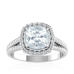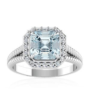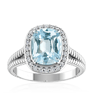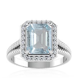 5.99ct Aquamarine set in Split Serpent Halo Natural Diamond Ring