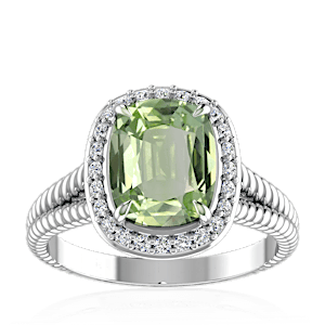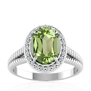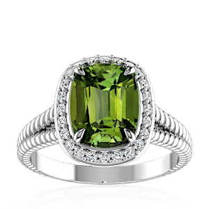 2.99ct Green Tourmaline set in Split Serpent Halo Natural Diamond Ring