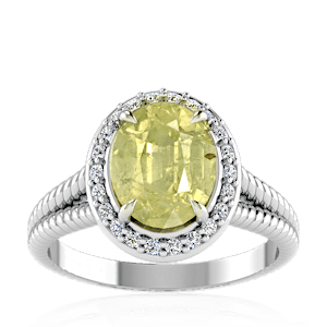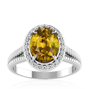 4.40ct Sphene set in Split Serpent Halo Natural Diamond Ring