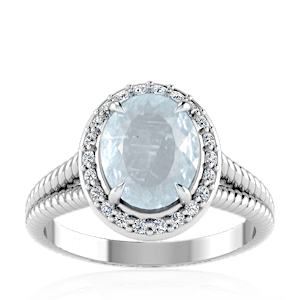 3.30ct Aquamarine set in Split Serpent Halo Natural Diamond Ring