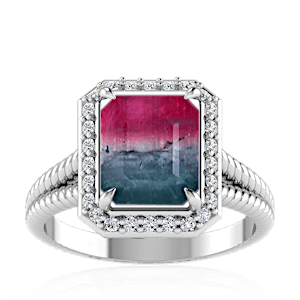10.57ct Bi Colour Tourmaline set in Split Serpent Halo Natural Diamond Ring