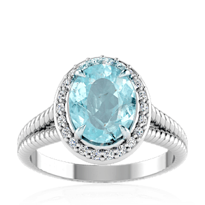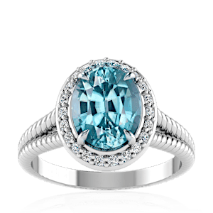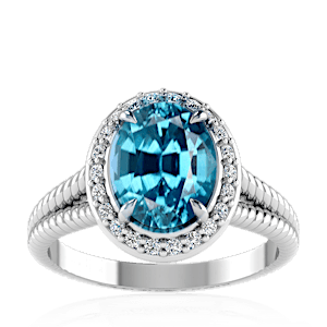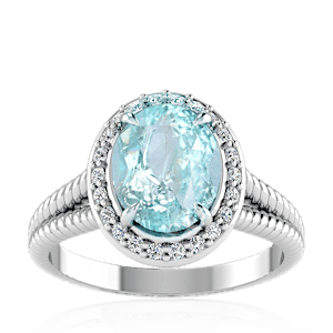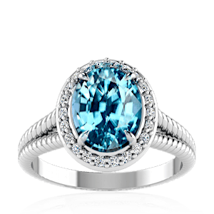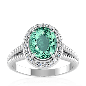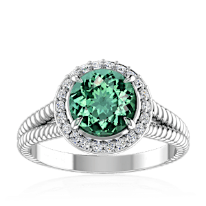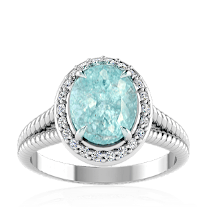 1.75ct Cuprian Tourmaline set in Split Serpent Halo Natural Diamond Ring
