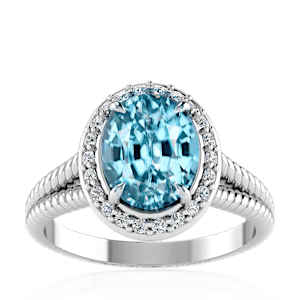 4.14ct Zircon set in Split Serpent Halo Natural Diamond Ring