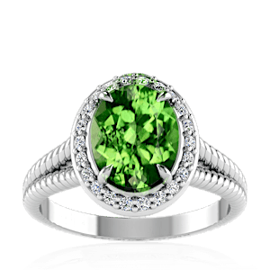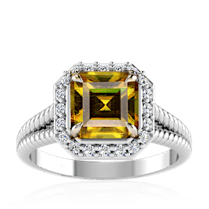 1.57ct Sphene set in Split Serpent Halo Natural Diamond Ring