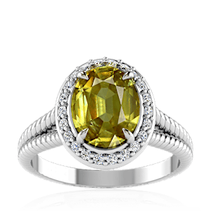 3.27ct Sphene set in Split Serpent Halo Natural Diamond Ring