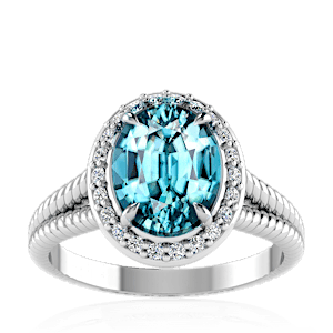 3.42ct Cuprian Tourmaline set in Split Serpent Halo Natural Diamond Ring