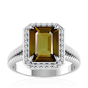 3.92ct Yellow Tourmaline set in Split Serpent Halo Natural Diamond Ring