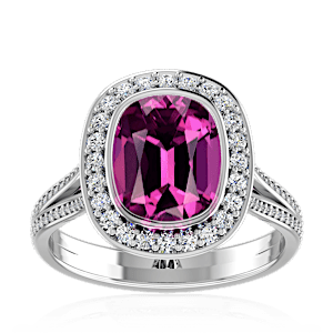 2.21ct Rhodolite set in Minimal Solitaire Natural Diamond Ring