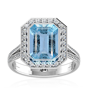 3.63ct Aquamarine set in Minimal Entangled Natural Diamond Ring