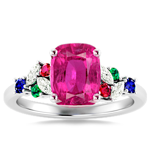 1.48ct Rubellite Tourmaline set in Modern Tri Color Gems & Diamond Ring