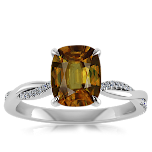 5.31ct Sphene set in Minimal Entangled Natural Diamond Ring