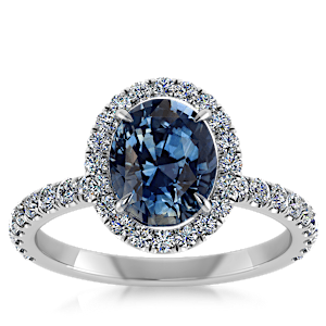 3.07ct Blue Sapphire set in Luxe Halo Natural Diamond Ring