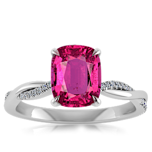 3.12ct Rubellite Tourmaline set in Minimal Entangled Natural Diamond Ring