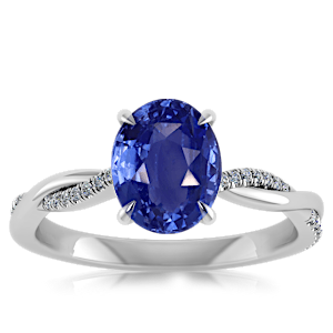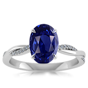 4.56ct Blue Sapphire set in Minimal Entangled Natural Diamond Ring