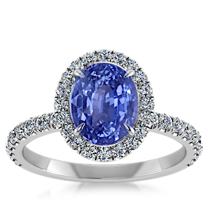 3.55ct Blue Sapphire set in Luxe Halo Natural Diamond Ring