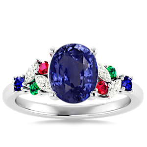 3.59ct Blue Sapphire set in Modern Tri Color Gems & Diamond Ring