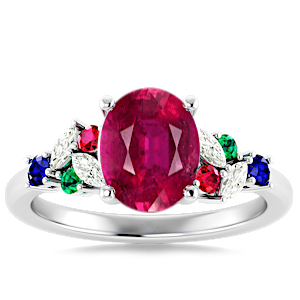 3.04ct Mozambique Ruby set in Modern Tri Color Gems & Diamond Ring