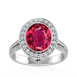 3.00ct Rubellite Tourmaline set in Luxe Halo Natural Diamond Ring