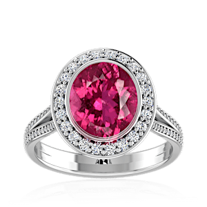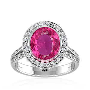 3.07ct Rubellite Tourmaline set in Luxe Halo Natural Diamond Ring