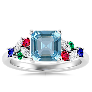 2.19ct Aquamarine set in Modern Tri Color Gems & Diamond Ring