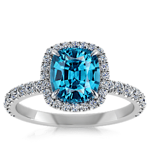 1.19ct Cuprian Tourmaline set in Luxe Halo Natural Diamond Ring