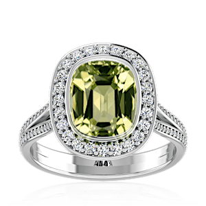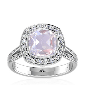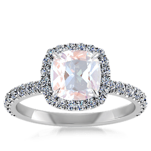 2.98ct Rainbow Moonstone set in Vintage Halo Natural Diamond Ring