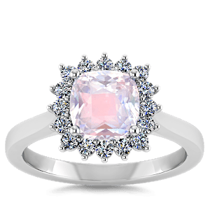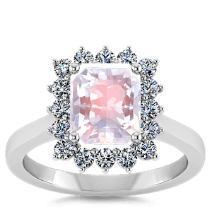 1.95ct Rainbow Moonstone set in Luxury Halo Crown Diamond Ring