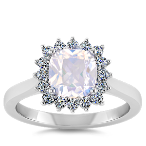 2.50ct Rainbow Moonstone set in Vintage Halo Natural Diamond Ring