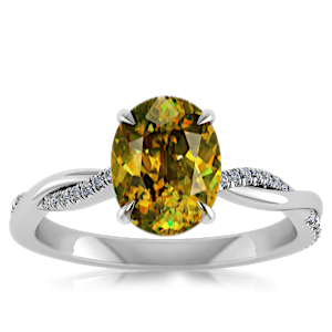 4.07ct Sphene set in Minimal Entangled Natural Diamond Ring