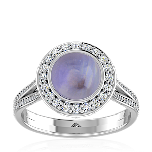 4.40ct Blue Moonstone set in Luxury Halo Crown Diamond Ring