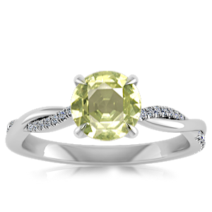 5.09ct Peridot set in Minimal Entangled Natural Diamond Ring