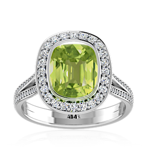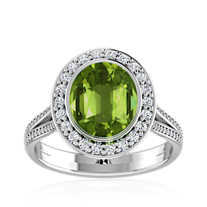 4.57ct Peridot set in Minimal Solitaire Natural Diamond Ring