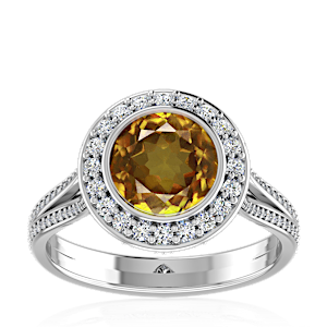 6.41ct Yellow Tourmaline set in Luxury Halo Crown Diamond Ring