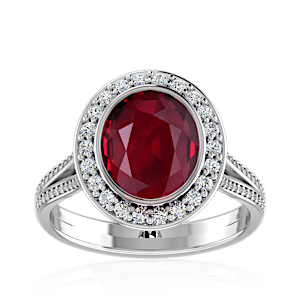 3.11ct Mozambique Ruby set in Vintage Halo Natural Diamond Ring