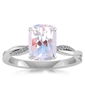 1.71ct Rainbow Moonstone set in Minimal Entangled Natural Diamond Ring