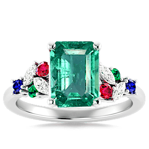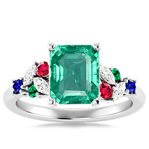 1.17ct Zambian Emerald set in Modern Tri Color Gems & Diamond Ring